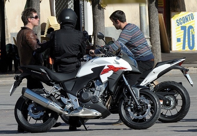 A nova família da suposta Honda CB 500 2013 foi flagrada durante filmagem de material publicitário na Itália. As fotos finalmente confirmam que se trata de um motor de 2 cilindros de refrigeração líquida e, maior novidade revelada pelas imagens, que haverá três versões. A naked e a CBR 500 aparecem acompanhadas de uma versão X, similar à NC 700X recentemente lançada no Brasil. Fontes ligadas à Honda Europa falam em potência ao redor de 47 cv. O lançamento mundial é aguardado para o Salão de Milão, no início de novembro.